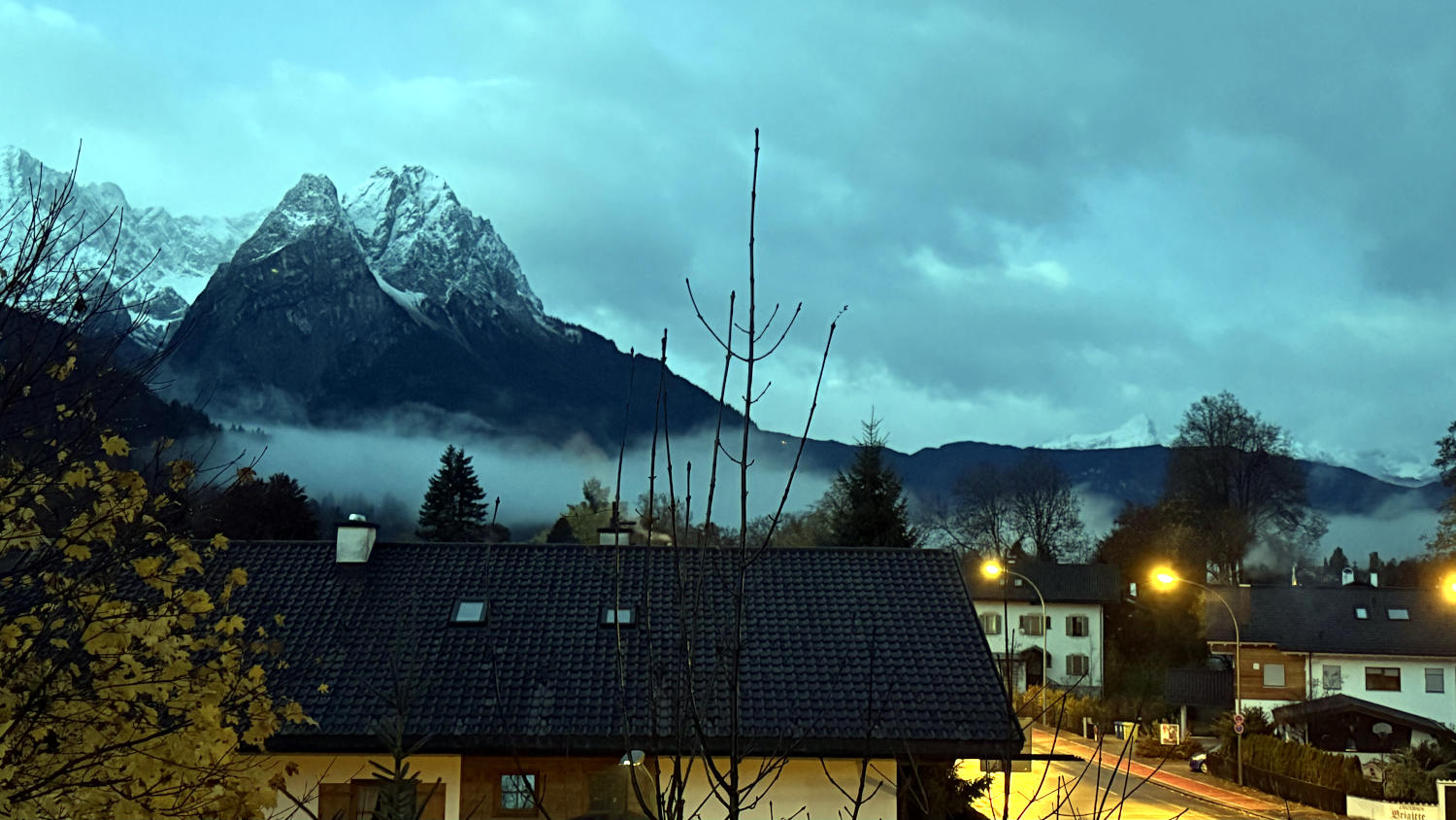 Wenn man in Garmisch-Partenkirchen ist, muss man durch die Partnachklamm laufen, egal wie oft man schon dort war. So will es das Gesetz. Also wanderten wir durch die Klamm, staunten und studierten alte Geschichten über die Holztrift, den Transport von Holzstämmen durch das Wasser der Schlucht. Hinter der Klamm stiegen wir in engen Schleifen hinauf auf den Eckbauer. Auf der Außenterrasse verköstigten wir Kaiserschmarrn und schauten auf die Berge, als justament Herr Stör ums Eck kam – er ist den meisten von Ihnen bekannt durch 16 Stunden Leid in Hamburg. Ein großes Hallo!