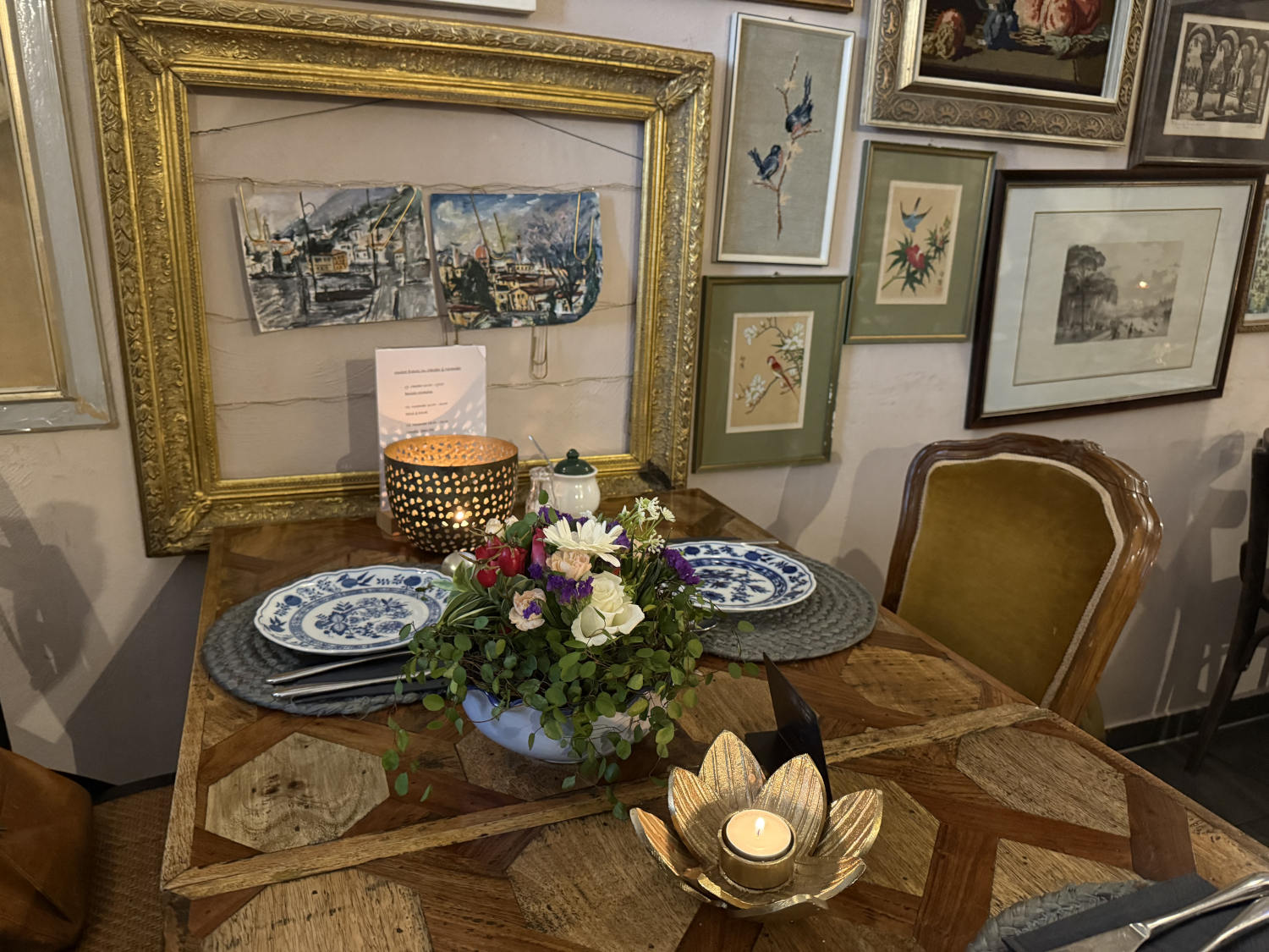 Nach dem Workshop habe ich in einem Laden zu Abend gegessen, der nur Flammkuchen macht. Lecker. Auf dem Tisch stand eine Flasche. Wenn man etwas von der Bedienung will, stellt man eine Flagge hinein. Gutes System! Das und weitere Eindrücke aus Heilbronn: