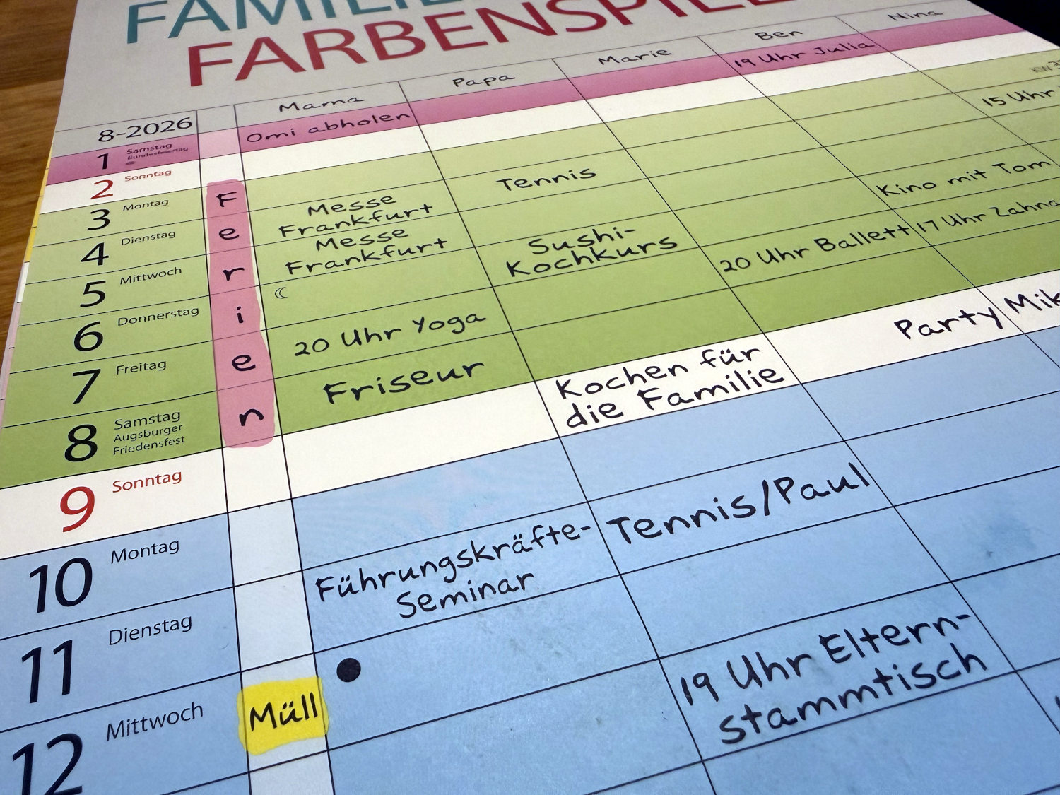 Das Jahr 2026 wirft seine Schatten voraus: Wir haben einen neuen Familienkalender. Ich erfreute mich am Deckblatt, das mit Rollenklischees bricht.