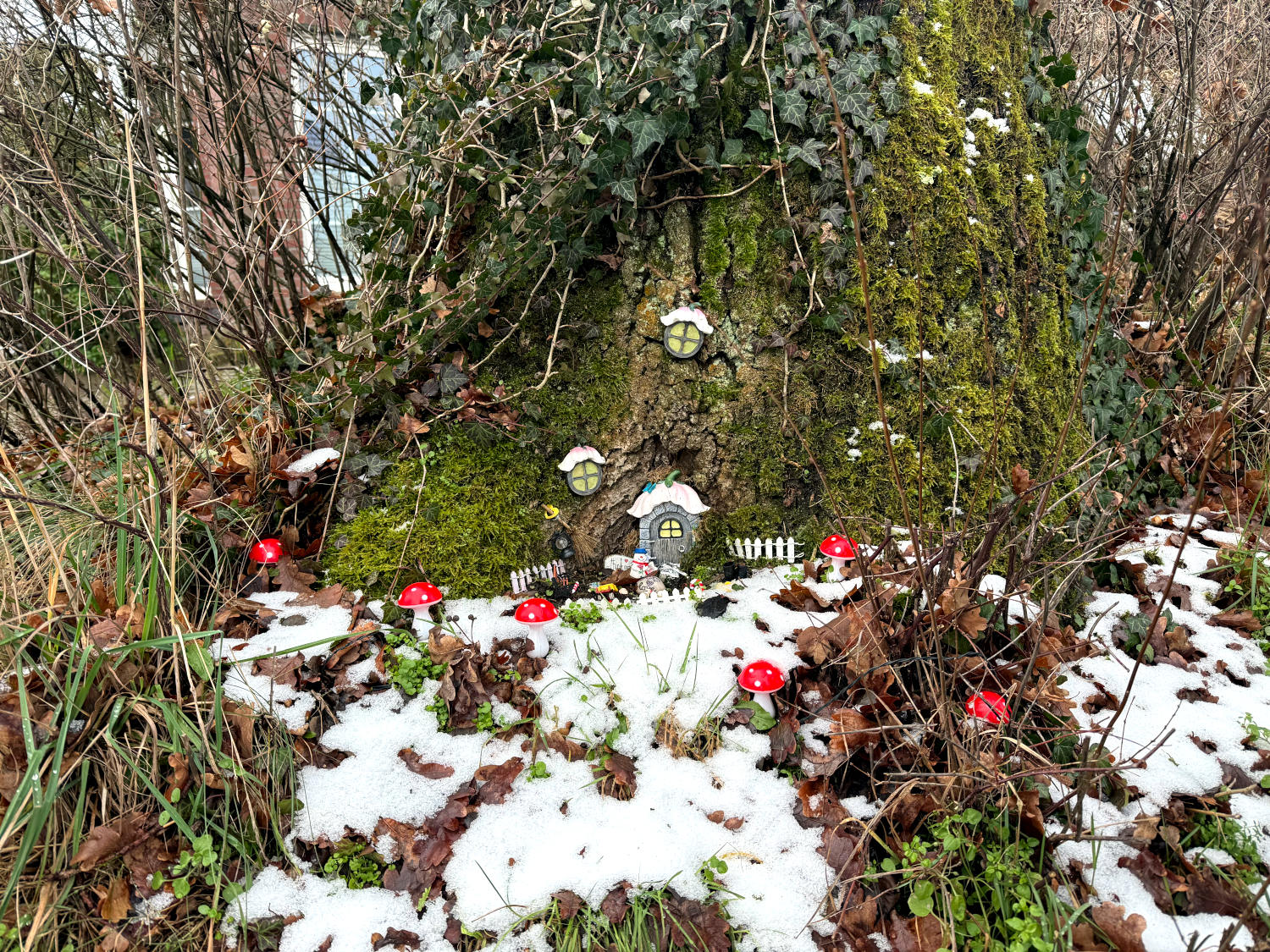 Ausflüge | Diverse Dorfspaziergänge. Knirschender Schnee, Spuren von Wichteln und ein guter Tag für Windenergie.