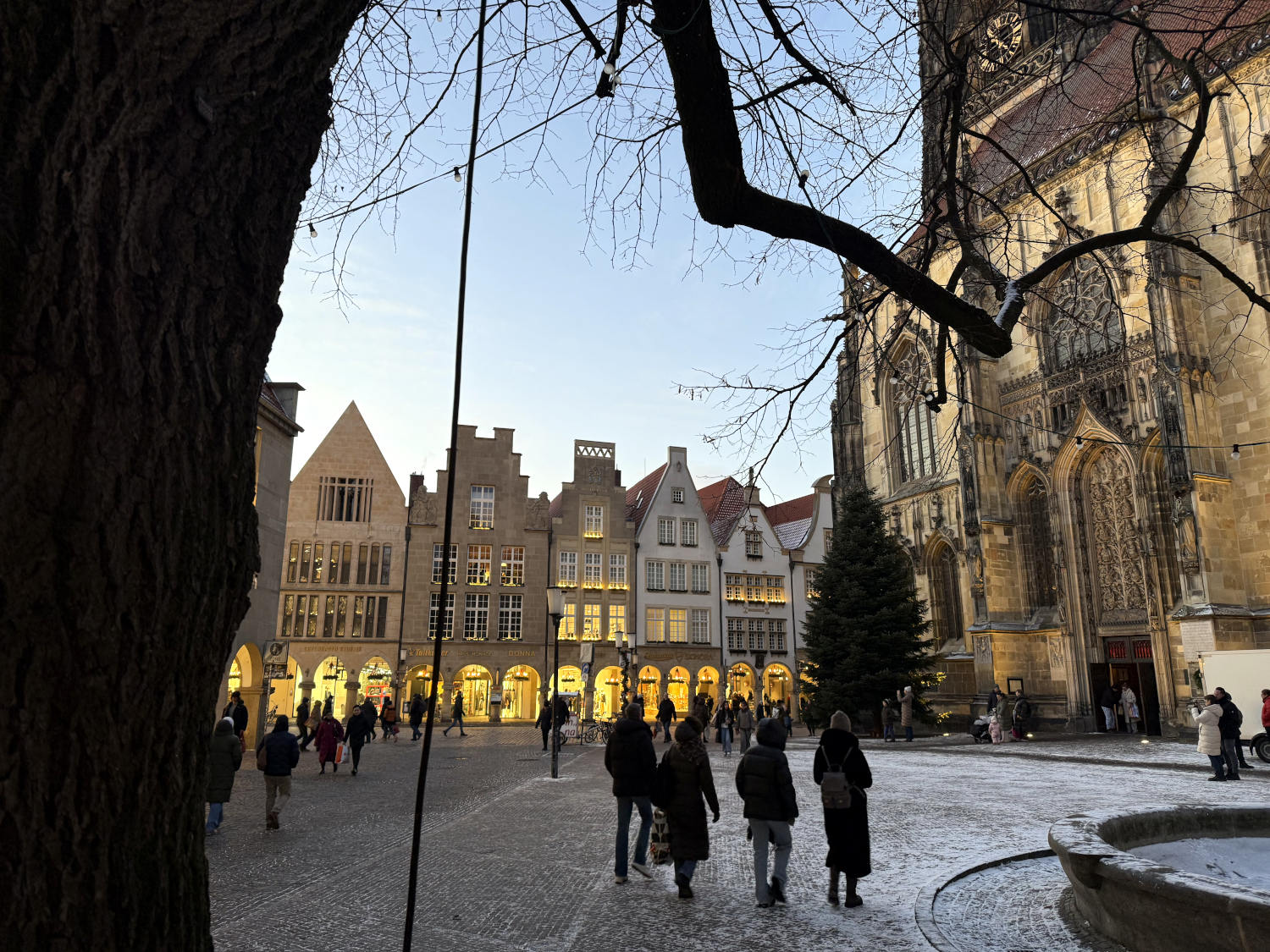 Ein Ausflug nach Münster. Mit dem Zug sind es nur 30 Minuten nach Münster, direkte Verbindung. Der Weg vom Bahnhof in die Altstadt ist kurz, der Kaffee in Münster ausgesprochen lecker, und ich habe neue Treckingschuhe fürs Spazieren und Radfahren gefunden. Im April radeln der Reiseleiter und ich von Lübeck nach Kopenhagen. Dafür braucht’s wetterfestes Material.