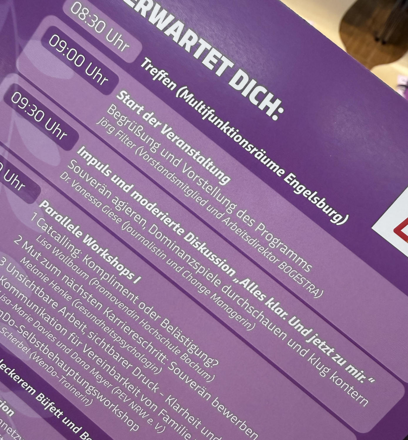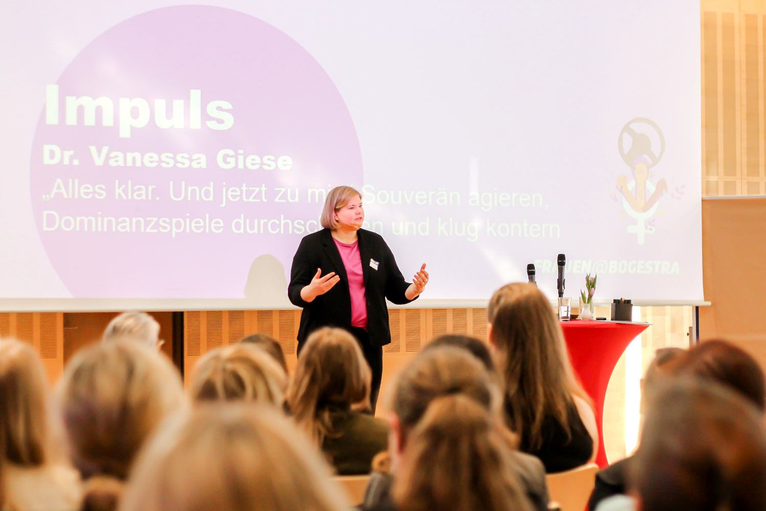 Ich sprach über souveränes Auftreten und darüber, wie man Dominanzverhalten kontert. Dazu mehr in meinem nächsten Newsletter, meldet Euch gerne an. Im Newsletter bekommt Ihr sechs Phrasen, die (fast) immer passen, um blöde Sprüche zu kontern. Außerdem erzähle ich, warum Sprüche, Seitenhiebe, provizierende Frotzeleien gar nicht so dumm sind, sondern eine soziale Funktion haben, die sogar Spaß machen kann.