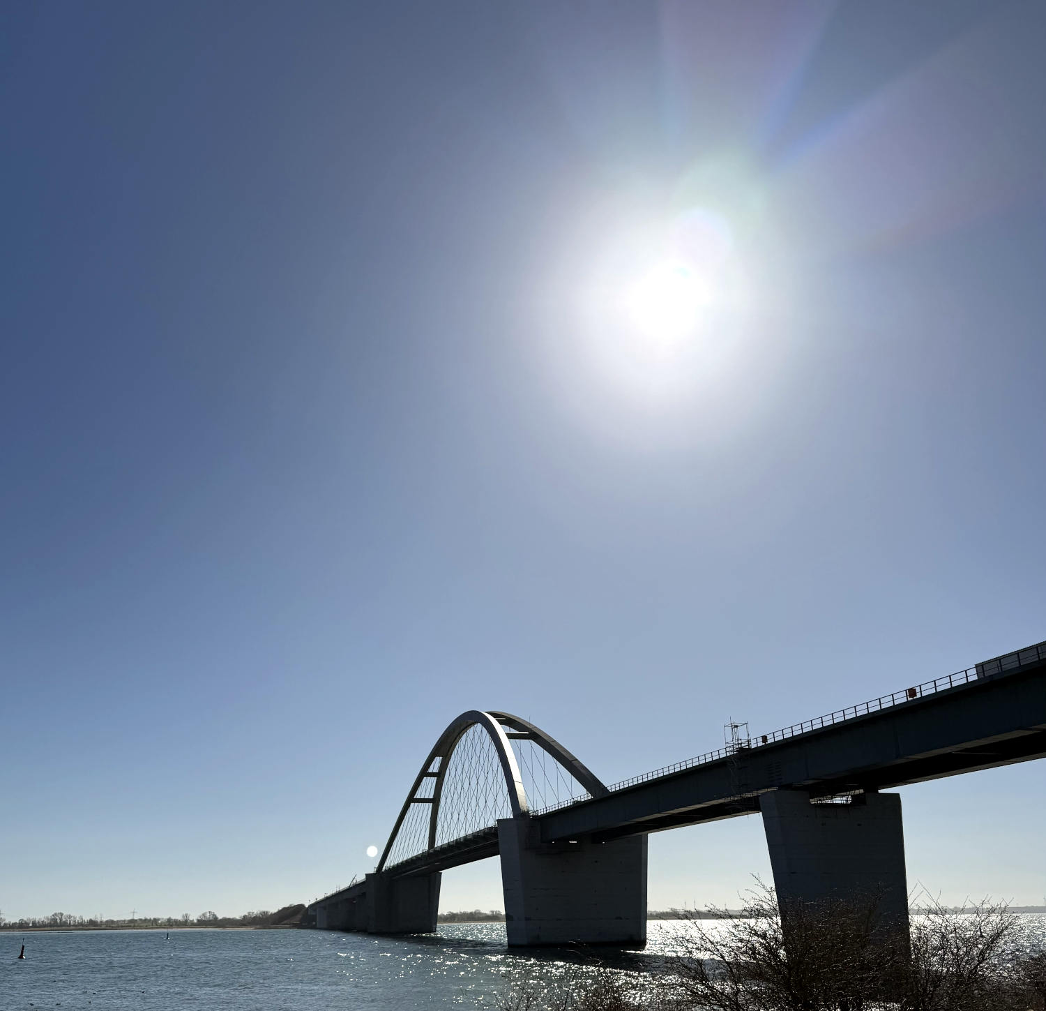 Dann trafen wir auf die erste große Brücke der Reise, knapp einen Kilometer lang: die Fehmarnsundbrücke.