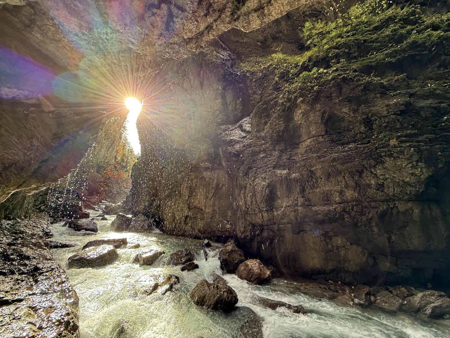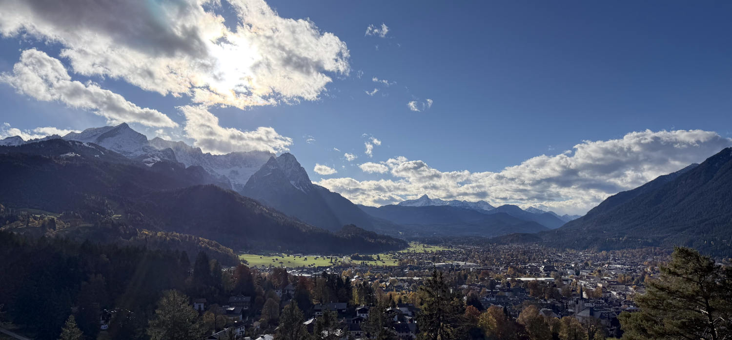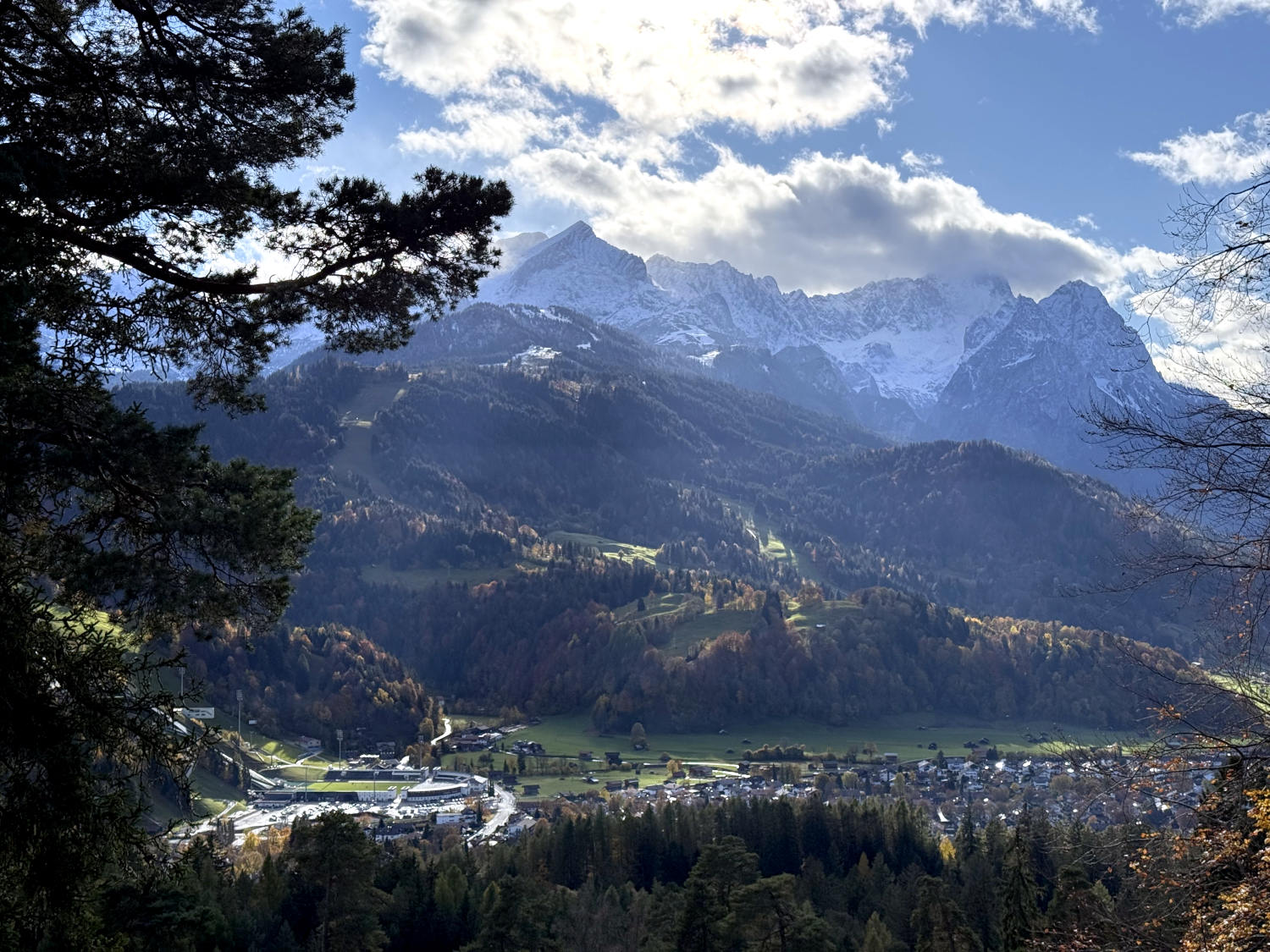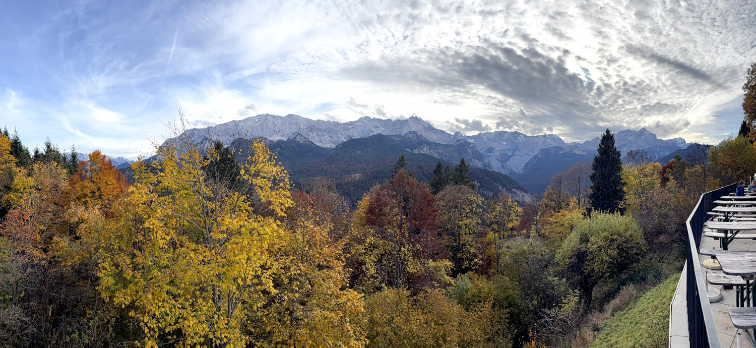 Wenn man in Garmisch-Partenkirchen ist, muss man durch die Partnachklamm laufen, egal wie oft man schon dort war. So will es das Gesetz. Also wanderten wir durch die Klamm, staunten und studierten alte Geschichten über die Holztrift, den Transport von Holzstämmen durch das Wasser der Schlucht. Hinter der Klamm stiegen wir in engen Schleifen hinauf auf den Eckbauer. Auf der Außenterrasse verköstigten wir Kaiserschmarrn und schauten auf die Berge, als justament Herr Stör ums Eck kam – er ist den meisten von Ihnen bekannt durch 16 Stunden Leid in Hamburg. Ein großes Hallo!