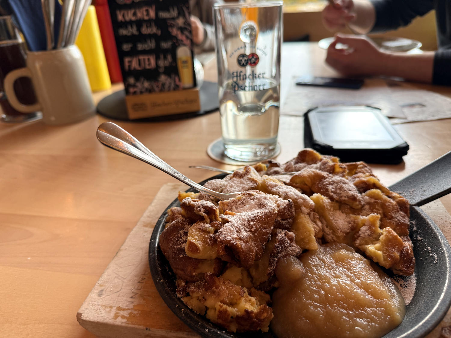 Kaiserschmarrn gab es noch ein weiteres Mal auf, nämlich auf der Tannenhütte, man braucht schließlich einen Vergleich. Der Tannenhütten-Kaiserschmarrn punktete durch die Absenz von Rosinen, auf dem Eckbauer war die Menge an Apfelmus auskömmlicher.